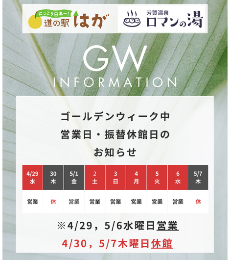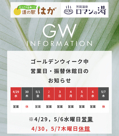 「道の駅はが」「ロマンの湯」どちらも