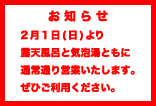 2月1日(日)より、露天風呂と気泡湯ともに通常通り営業致しております